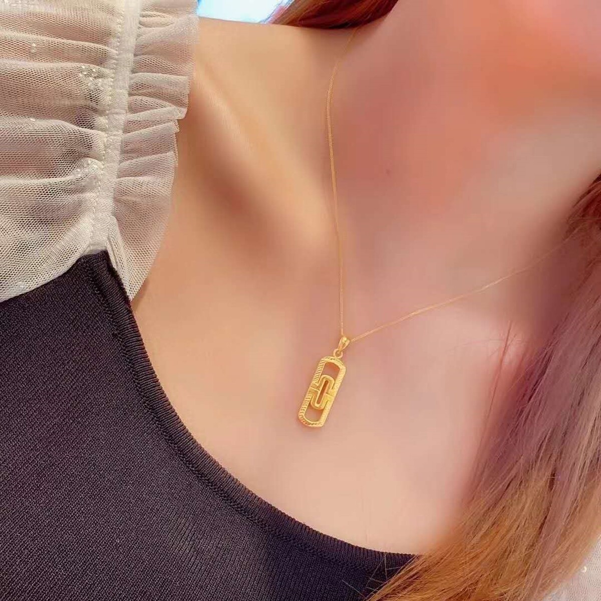 佟小喵珠宝抖音款999足金回形针吊坠搭18K金肖邦链3D硬金送女友热门设计联盟服务商