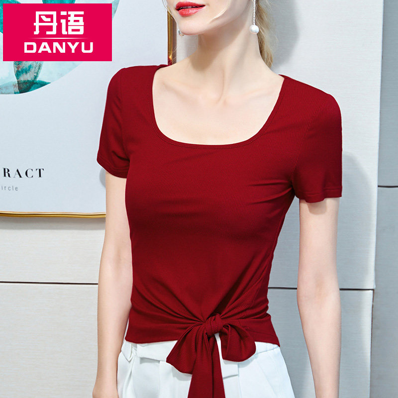 短袖t恤女设计感小众系带衫法式别致丅恤下摆侧面打结不规则上衣热门设计联盟服务商
